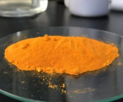 今回はヘキサアンミンコバルト(Ⅲ)塩化物を合成します。色は橙黄色でコバルトブルーのイメージがある人には新鮮に思えるかもしれません。6つ(hexa)のアンモニアがコバルト(Ⅲ)イオンに配位した八面体構造を持っています。